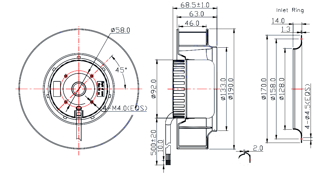 -本型號公司采用環保、防火、純銅線,進口矽鋼片生產。離心機JXJ19063D4H-B風輪,采用進口ISC滾珠,,轉速可以高達3600RPM ,風量達660立方/時,常用于凈化器上,帶FG RD PWM等功能,平衡穩定,是公司成熟之產品